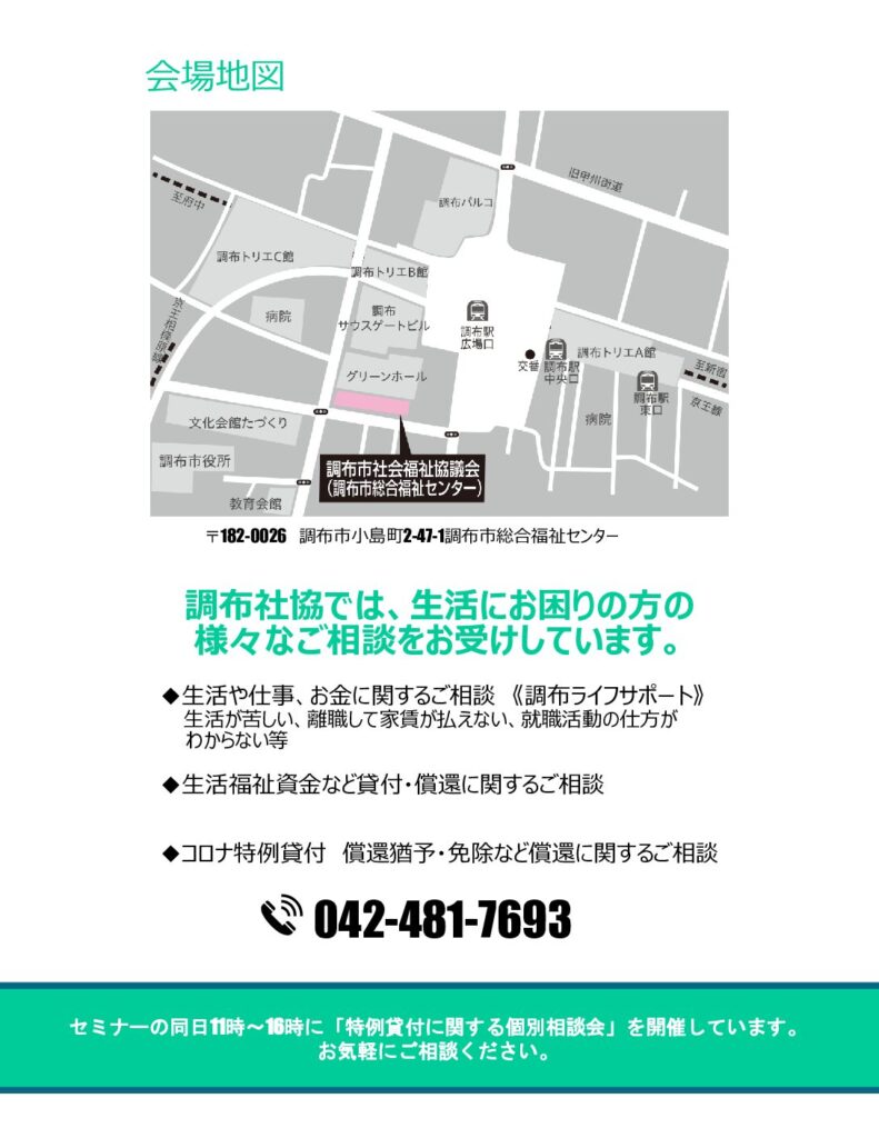 同日11時~16時の間、特例貸付の返済や償還免除、償還猶予についての個別相談も受け付けています。平日はなかなかご相談に来られない方はぜひこの機会をご利用ください。