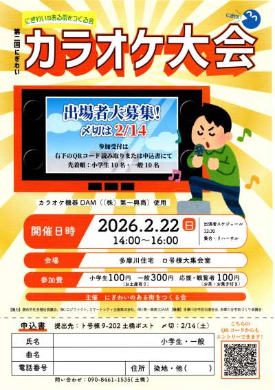 第二回にぎわい カラオケ大会 <画像をクリックまたはタップで拡大> 開催日時 2026年2月22日(日曜日) 開始:14:00 終了:16:00 会場 多摩川住宅 ロ号棟大集会室 調布市 染地3-1-134 主催者 にぎわいのある街をつくる会 イベント詳細 1回完結!初めてでも絵が苦手でも簡単に描ける!(内容説明) 開催日時 2021年8月16日(日曜日) 参加費・料金 無料 定員 20 会場 染地地域福祉センター 大集会室調布市染地3-3-1 主催者 調布市地域包括支援センターときわぎ国領 イベント詳細